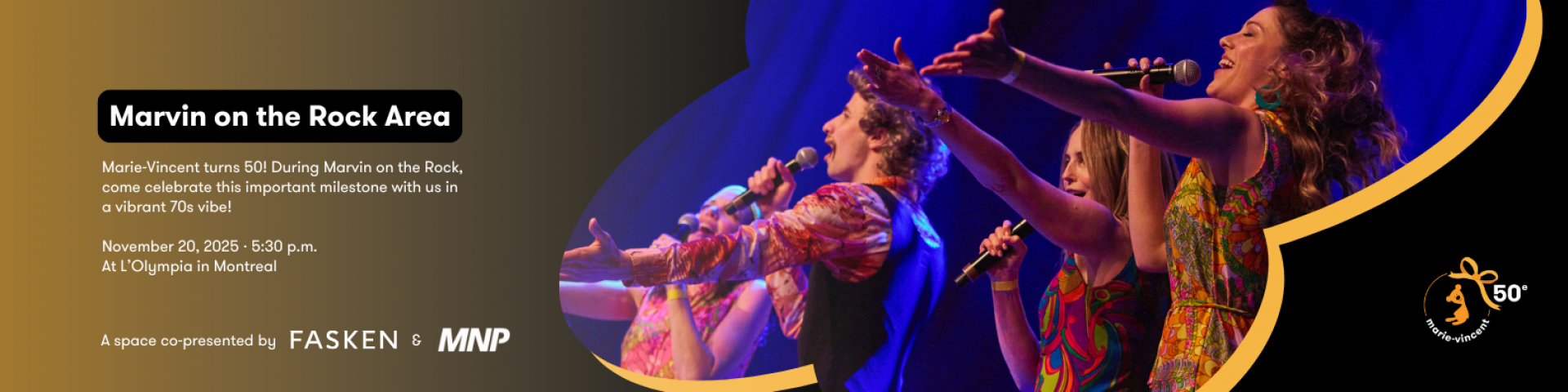 For over a decade, Marvin on the Rock has invited business leaders to step out of their comfort zone and take the stage—coached by professional mentors—to deliver bold musical performances in support of Marie-Vincent. A powerful gesture, echoing the courage of the young survivors of sexual violence we support every day: breaking the silence, daring to be vulnerable, and finding their voice.